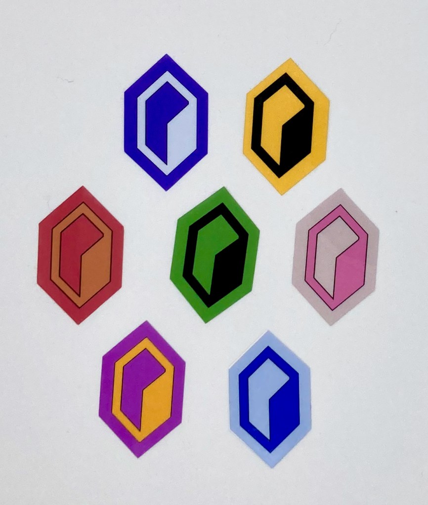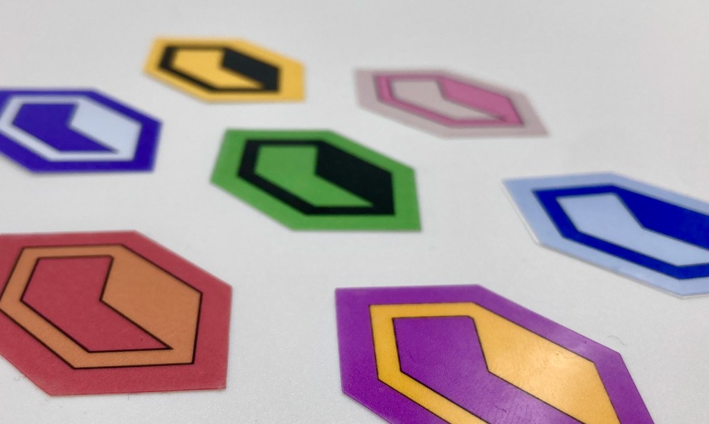 These stickers are printed at our home studio in Birmingham, UK and made from high-quality glossy vinyl and are small enough to fit anyway such as on all deck boxes, token cases, water bottles, and anything else a colourful runner might be carrying.